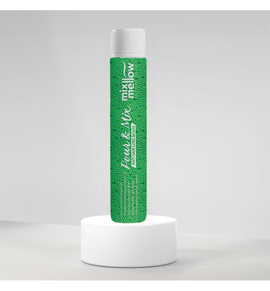 | Mixmellow Anti Hair Loss Beads kuru, nemsiz ve dökülmeye karşı yeşil protein boncukları ile saçlarınızı güçlendirir. Renk açma işleminde açıcıyla beraber kullanımında saçı korur ve yıpranmasını önler. Saç bağı dokusunun yeniden oluşumuna yardımcı olur. Aşırı işlem görmüş tüm boyalı saçlar için de kullanıma uygundur. |